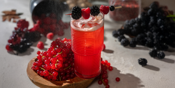 Johnnie Walker Black Ruby Label / kordiał z leśnych owoców i czerwonego pieprzu / woda gazowana